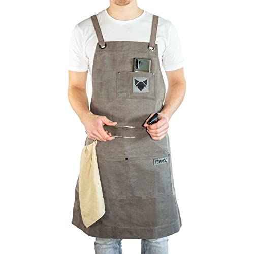 FENNEK Grillförkläde | högkvalitativt utförande | med impregnering genom vaxskikt, GRÅ, One size