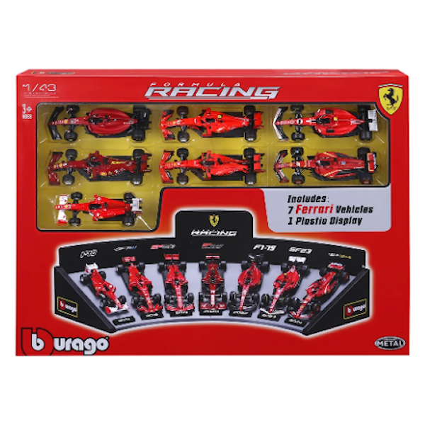 BBurago 1:43 Ferrari F1 Deluxe Gift Set med displayställ