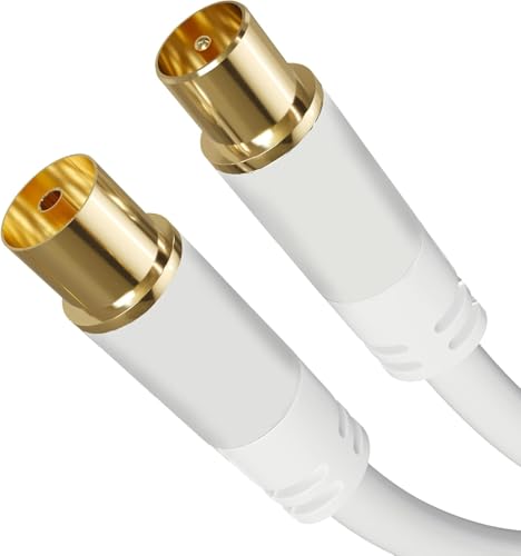 Good Connections SAT TV-antennkabel – koaxkontakt till koaxuttag – 2 x mantelströmfilter (ferritkärna), dubbelskärmning, skärmmått > 95 dB – vit, 1 m