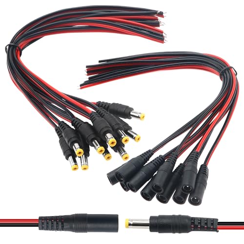 YIXISI 20 Par DC Power Pigtail-kabel (18AWG Ren Koppartråd), 12V 5A Manliga och Kvinnliga Kontakter Strömadapter Kontakter för Hemsäkerhet Kamera och Festbelysning