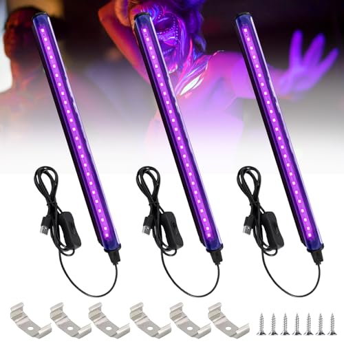 Svartljusrör, 3 stycken LED-lampa 5 W 24 LED 28 cm, UV remsa med strömbrytare, USB LED-festbelysning för scenbelysning kroppsmålning tillbehör