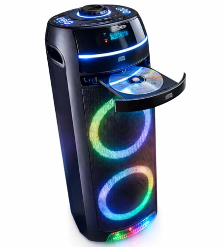 REFLEXION PS10BTCD mobil Bluetooth-festhögtalare, LED-discobelysning, med inbyggd CD-spelare, mångsidiga anslutningar, batteri för 10 timmars musik, svart