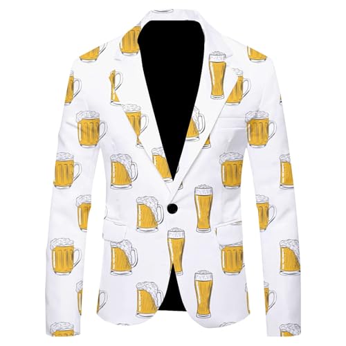 Blazerjackor för män UK kostym för män 2025 trendig oktoberfest tryckt vardaglig kostym jacka festival kläder festival firande utomhus evenemang jacka män kostym, Vitt, M