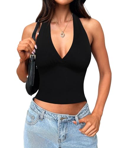 Navneet Neckholder topp damer rygglös topp Y2K toppar axelbandstopp sexig festival rave party outfit, Svart halterneck tank, M