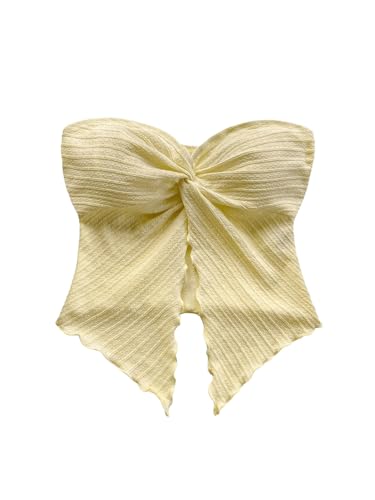 GORGLITTER Dam axelbandslös topp sommar croptop magfri topp Y2K axellös toppar rave festtopp festival outfit sommartopp med slits, GUL, M