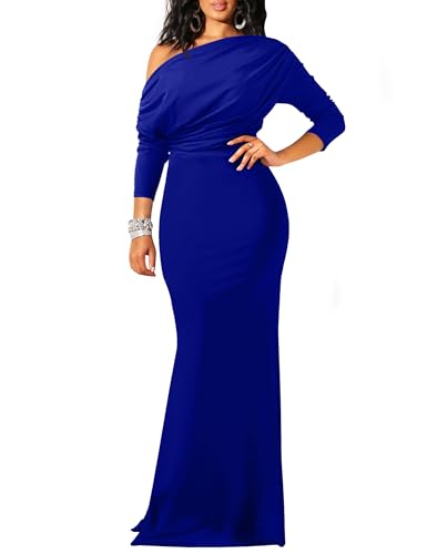 YMDUCH Damklänning, elegant, sexig formell klänning med långa ärmar och bar axel, figurnära lång festklänning, Kungsblå, XL