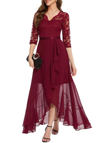 Bbonlinedress Aftonklänning, elegant för bröllop, spetsklänning, chiffongklänning, hi-lo-klänning, brudklänning, festklänning, examensklänning, lång, balklänning, strandklänning, Burgund, S