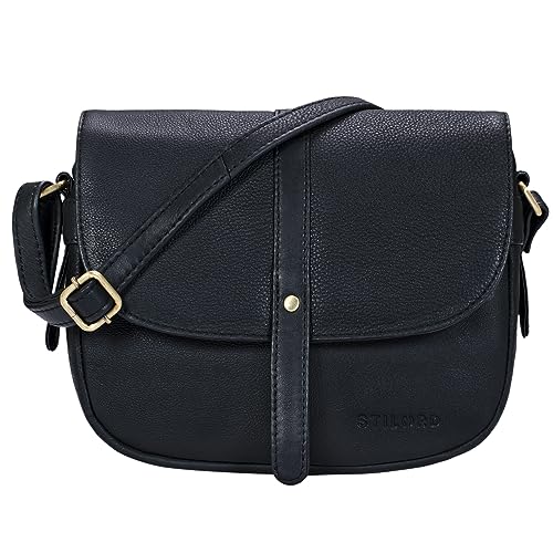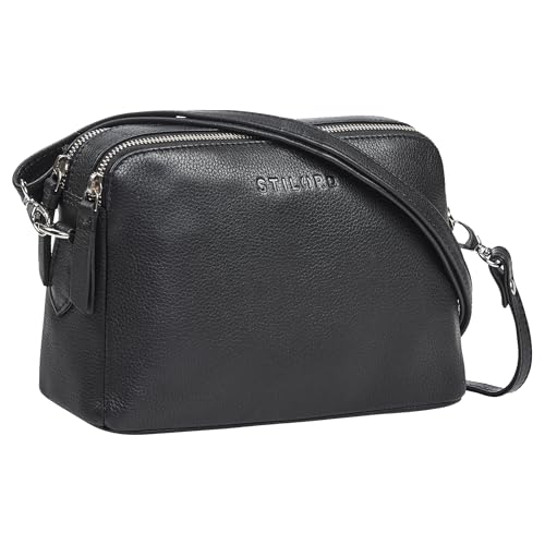 STILORD "Savannah" axelväska dam läder handväska liten axelväska axelväska utekasse festväska äkta läder Farbe:Svart