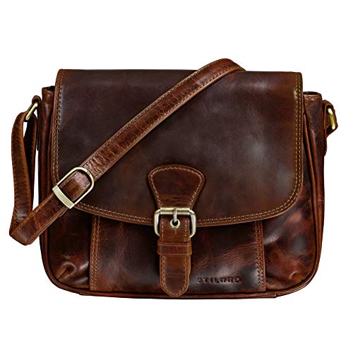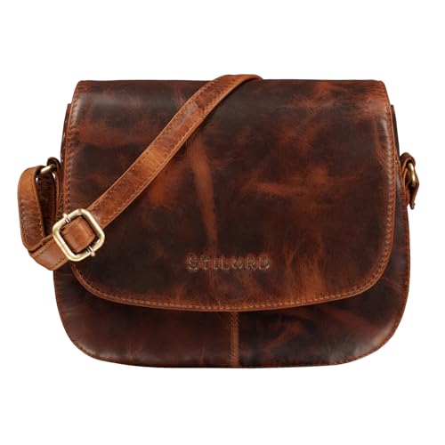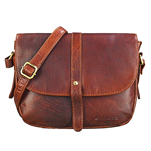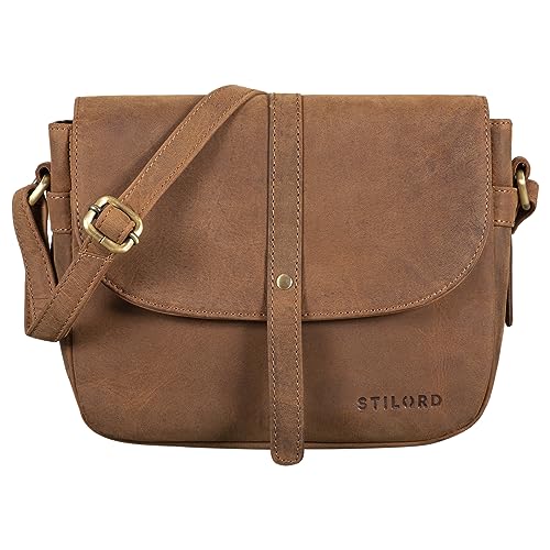 STILORD "Alessia" Liten läderhandväska dam axelväska vintage elegant idealisk som festväska shoppingväska läder Farbe:Mellanbrun