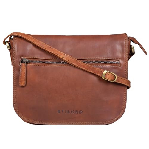 STILORD "Violeta" läder axelväska dam retro handväska liten axelväska kvällsväska festväska fritidsväska äkta läder Farbe:Kara-konjak