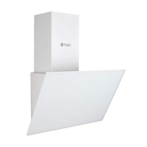Wiggo köksfläkt 60 cm huvudfri I frånluft luftcirkulation 300 m³/h – LED-pekskärm 3 nivåer I snedkåpa inkl. fettfilter och 2 x kolfilter I fläkt med glasfront vit