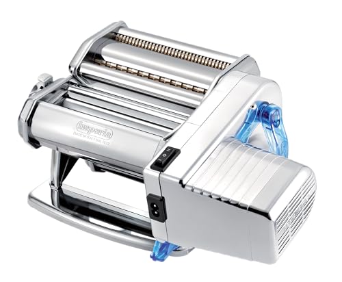 Imperia IPASTA Classica Elektrisk pastamaskin 100% Tillverkad i Italien. 220v elektrisk motor stål färsk pastamaskin för Lasagne, Cutter, Fettuccine (krom)