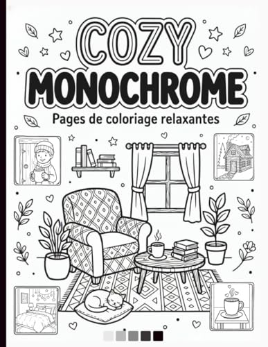 livre de coloriage Cozy Monochrome: 45 Illustrations Monochromes pour une Évasion Créative et Relaxante - Adultes, Adolescents et Tous Âges, Une seule couleur, un seul feutre (noir)