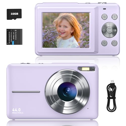 Sevenat digitalkamera FHD 1080P 44MP fotokamera fotoapparat digitalkamera med 32G-kort 16X digitalzoom kompakt enkel bärbar digital kamera för barn seniorer flickor nybörjare tonåringar (lila)