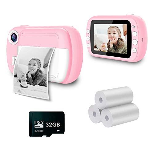 i-Paint P9 snabbkamera för barn, svartvitt tryck, på termiskt papper, 1080p, FHD digitalkamera, 3,5 tum LCD, 32 GB Micro SD, rosa