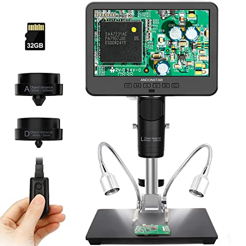 Andonstar AD246-M Digitalt mikroskop, lödningsmikroskop med 3 objektiv, elektroniskt mikroskop, 1080P FHD-videoinspelning, 7 tums LCD 500x, myntmikroskop, biologisk mikroskopsats med 32G-kort