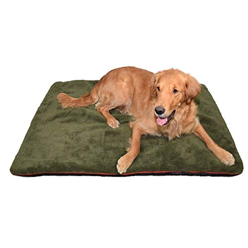 Petbed – Hundtäcke fiberpäls | robust material | isolerande termisk filt | tvättbar | halkfri | 90 x 130 cm, oliv