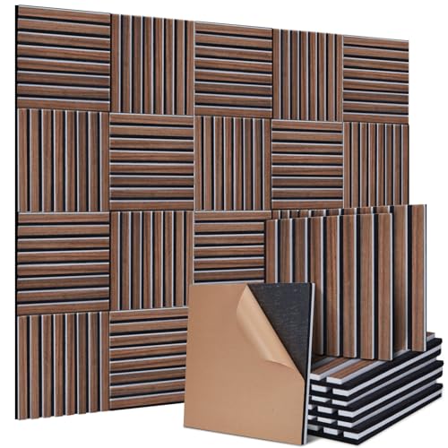 Kvadratiska akustiska plattor, självhäftande akustikpaneler, 4 stycken vardera 30 x 32 cm – valnötsfärgad fiberplatta på akustisk filt, väggbeklädnad för vardagsrum, HomeOffice & Studio