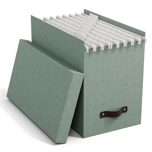 Bigso Box of Sweden JOHAN hängande registerlåda med lock – snygg arkivlåda inklusive 8 hängande häftapparater – hängande mapplåda av fiberplatta och papper i elegant linneutseende – mintgrön