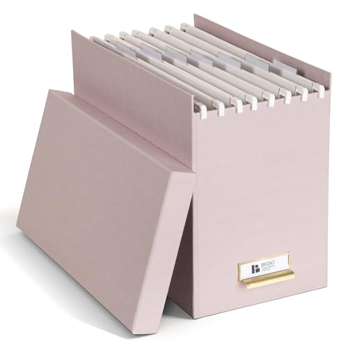 BIGSO JOHAN hängande registerlåda A4 – hängande mapplåda med lock och handtag – skrivbordsfack för hängmappar och dokument – förvaringslåda av återvunnen fiberplatta och papper – rosa