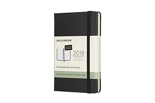 Moleskine Veckokalender, fickkalender, 12 månader, 2018, horisontellt, ficka, A6, tyska, hårt omslag, svart.