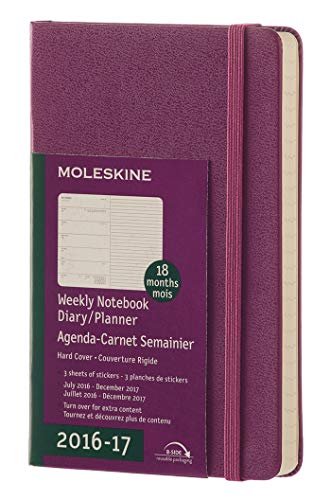 Moleskine veckor kalender, fickkalender, 18 månader, 2016/2017, ficka, A6, hårt skydd, vinröd