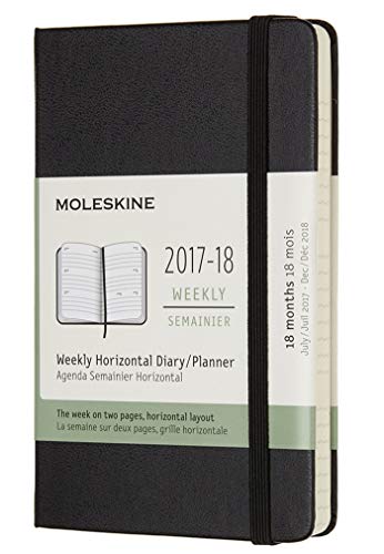 Moleskine veckors kalender, fickkalender, 18 månader, 2017/2018, horisontell, ficka, A6, Hard Cover, svart