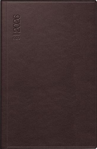 bsb Möteskalender veckoplanerare fickkalender bokkalender, 2022, ca A6, brunt, mjukt konstläder, med gummiband, 1 vecka = 2 sidor, bsb V-book, 02–0132