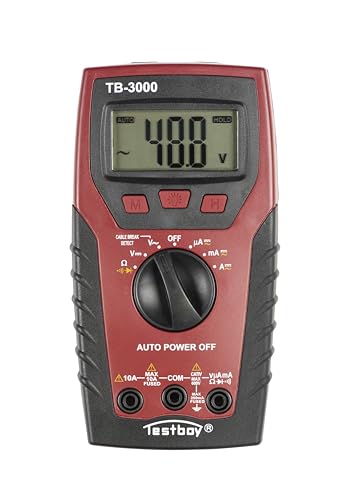 Testboy 3000 digital multimeter med kabelbrottsdetektor och säkerhetsnivå CAT IV (LED-ficklampa, automatisk räckvidd, datahållare, ABS-plasthölje), röd/svart
