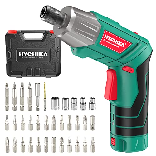 HYCHIKA BETTER TOOLS FOR BETTER LIFE Batteridriven skruvdragare SD-4C, 6 N· m max. Vridmoment 2 000 mAh 3,6 V Li-Ion batteri med 36 tillbehör, LED-ljus och ficklampa, spärrnyckel, grön