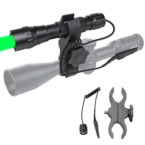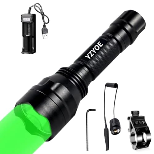 YZYOE Taktisk ficklampa med uppladdningsbart grönt ljus, 500 meter grönt LED-jaktljus, Picatinny skenmontering, universell med tryckbrytare för långdistansjakt