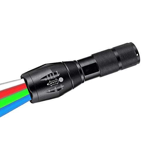 4-i-1 LED-ficklampa med rött grönt vitt blått ljus, WESLITE flerfärgad taktisk ficklampa utomhus vägsignalfackla zoombara handficklampor för astronomi nattvision vandring (4 färger)
