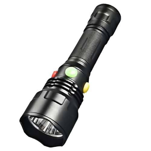 LUXJUMPER 4-i-1 taktisk ficklampa i flera färger, vit röd grön blå ljus uppladdningsbar ficklampa, 4 lägen vattentät zoombar LED jaktfackla lämplig för astronomi nattobservation jakt fiske
