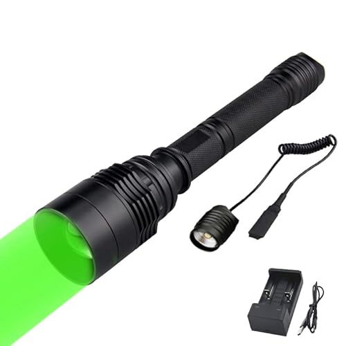Ficklampa med grönt ljus för jakt, Weslite, superstark grön lampa, ficklampa, fokus, justerbar 1 läge, ficklampa, grönt ljus med tryckbrytare, 350 meter lång räckvidd, utomhusficklampa för