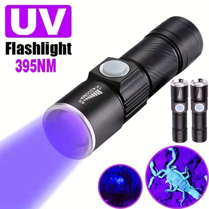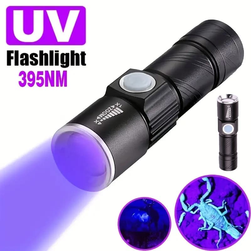 Bomclap Uppladdningsbar UV-Ficklampa 395nm med Zoom – Svartljus för Husdjursurin, Resin & Jakt
