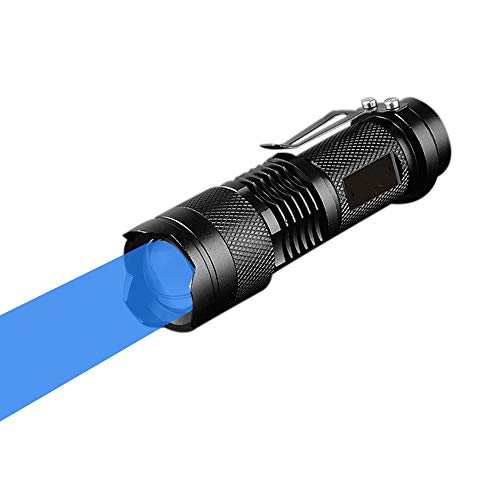 Blå ficklampa, WESLITE blåljus minilampa, blå stråle, LED-ficklampor, 3 lägen, zoombar, med klämma, lång räckvidd för nattfiske, jakt (batteri ingår inte)
