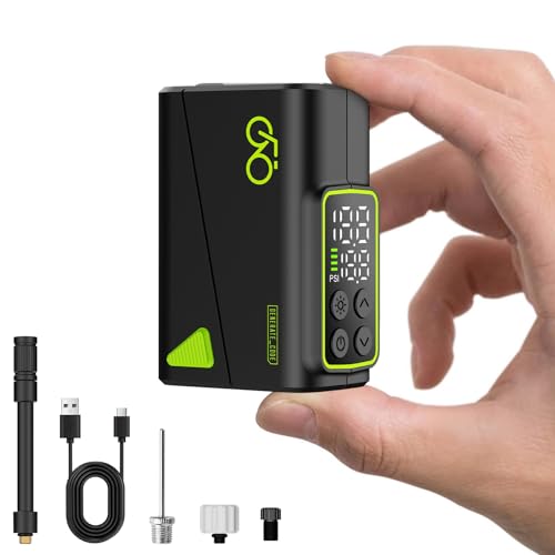 elzle Mini elektrisk luftpump cykel, max 150 PSI cykelpump med ficklampa, 150 g bärbar cykelluftpump för cykel motorcykel skoter bollar, LED digital skärm, USB-C laddningsbar