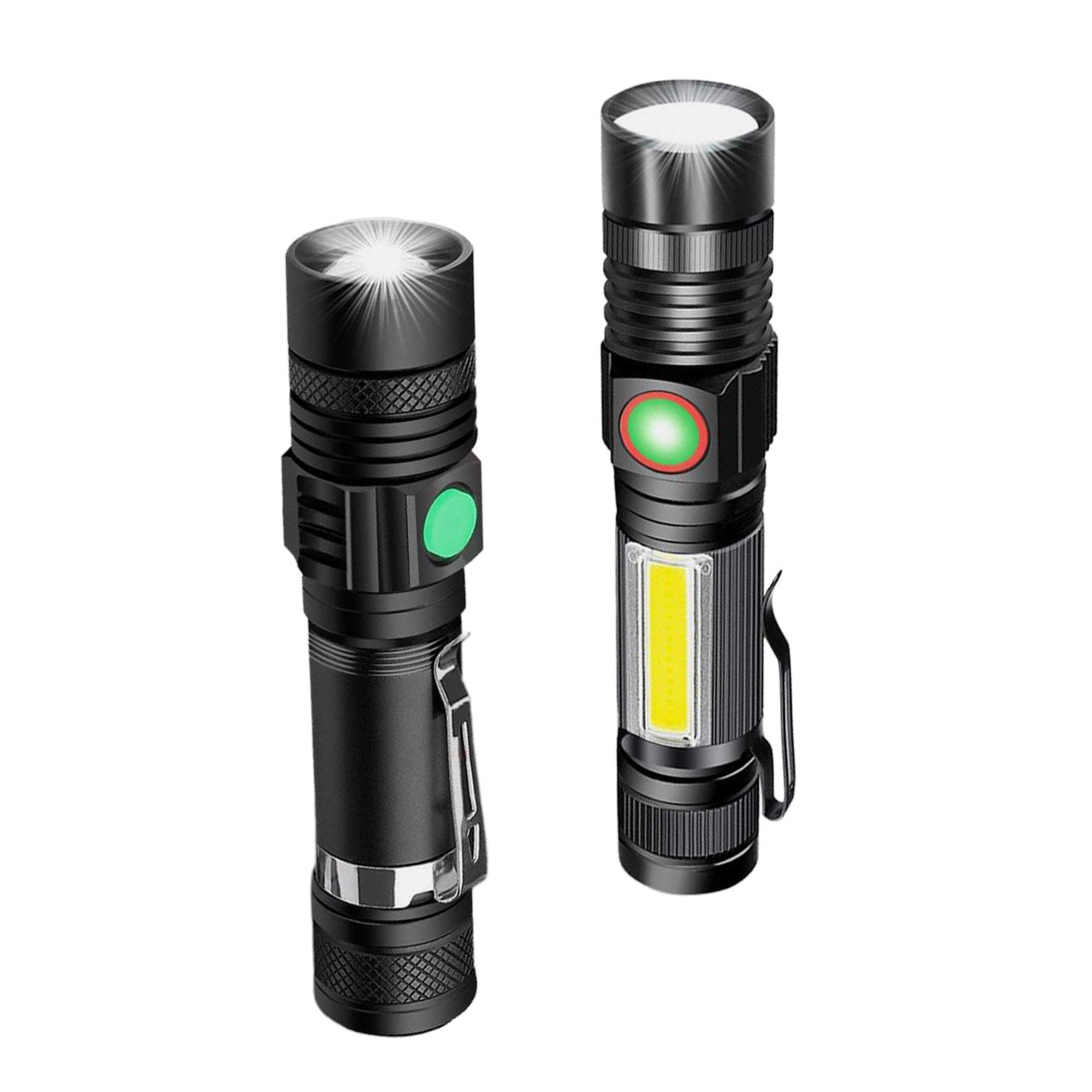 LHKJ 4 lägen USB-laddningsbar 800 lumen taktisk ficklampa med bakmagnet, mini zoombar fickficklampa, bärbar T6 + COB LED-ficklampa