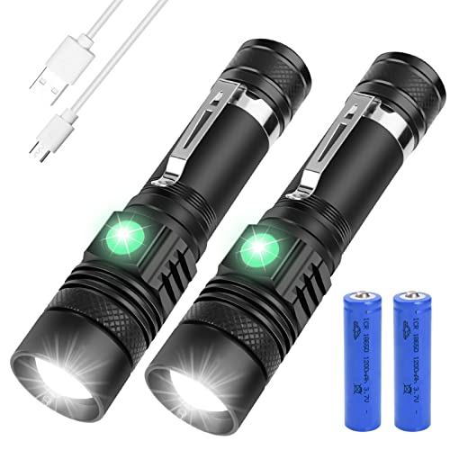 Flintronic LED-ficklampa, 2 st uppladdningsbar mini kläm-ficklampa med 2 x 18650 batterier, CREE-T6 superljus 1000 lumen, 4 lägen, lätt zoombar ficklampa för utomhus, camping, vandring, nödsituation
