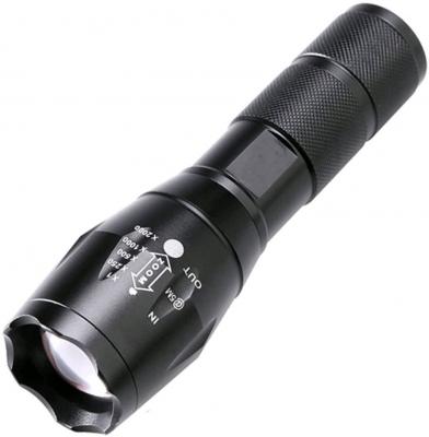 Hausbell T6 justerbart fokus zoom LED-ficklampa med uppladdningsbart 18650 batteri och smart laddare (svart)