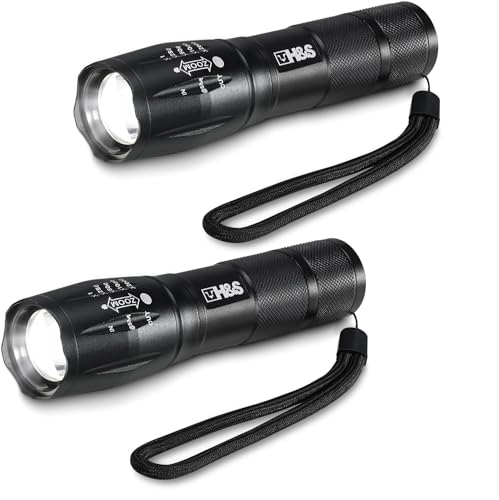 H&S LED-ficklampor, set med 2 – superljus, ficklampa – vattentät, perfekt för vandring eller camping, ministorlek, T6 LED-chip med 5 belysningslägen