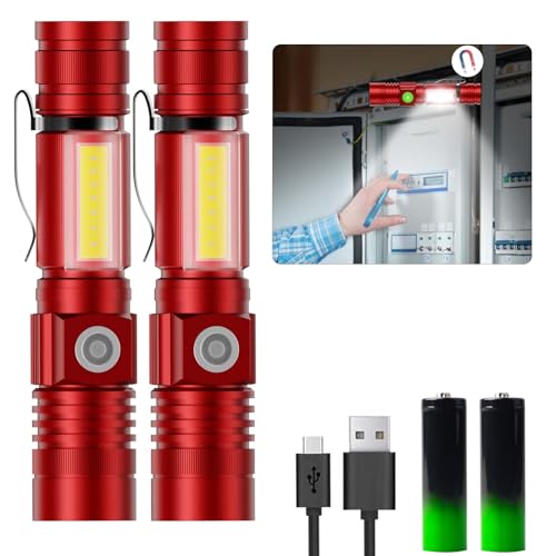 Karrong ficklampa LED uppladdningsbar med magnet COB sidoljus zoombar, extremt ljus 3 000 lumen USB-ficklampor batteridriven vattentät, 4 lägen för utomhus vandring camping nödsituation, röd
