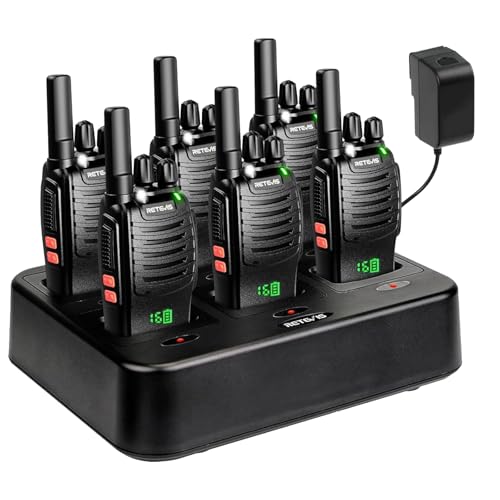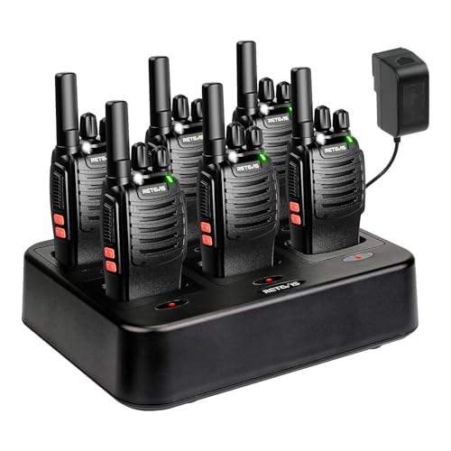 Retevis H777 Walkie Talkies Uppladdningsbar, Tvåvägsradio med Sexvägs Laddare, Effektiv Laddning, PMR446 Licensfri, LED-Ficklampa VOX, Hanterad Walkie Talkie för Säkerhet, Skola (Svart, 6 St)