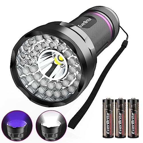 EverBrite 2-i-1 UV-ljus, svartvita ljusficklampor batteridrivna, LED 395 nm ultraviolett ficklampa svart ljusdetektor för husdjurs urin fläckar på matta/golv