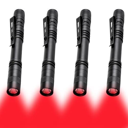 MODOAO LED-ficklampa med rött ljus, 4-pack högeffektiva LED-pennficklampor, vattentäta handhållna ficklampor, kompakt ficklampa med klämma, för camping, vandring, mörkerseende, astronomi och