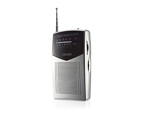 HAEGER Fickradio bärbar radioapparat med teleskopantenn 29 cm LED-indikator, hörlursindikator, ingångsanslutning för hörlurar