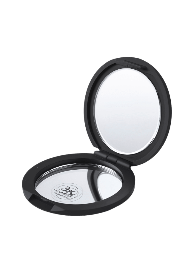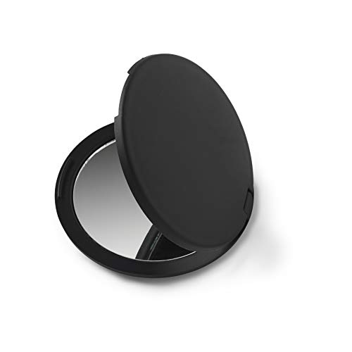 Manicare Kompakt spegel, dubbelsidig hopfällbar fickspegel, rund svart skönhetsspegel, okrossbar mjuk beröringsfinish, sminkspegel perfekt för handväska, plånbok, väska och resor