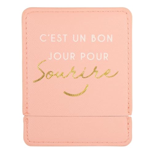 Draeger Paris | Fickspegel det är en bra dag att le med rosa fodral | fyrkantig sminkspegel att ta med överallt | Perfekt hem och resor | 9 x 7 cm | personlig födelsedagspresent, jul