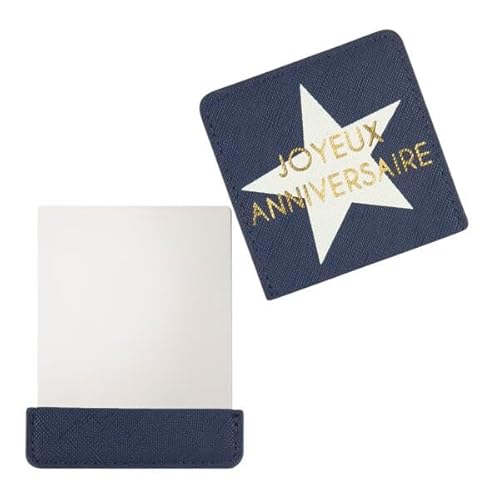 Draeger Paris | fickspegel grattis på födelsedagen blått fodral | fyrkantig sminkspegel att ta med överallt | Perfekt hem och resor | 9 x 7 cm | födelsedagspresent för älskare, vän, familj
