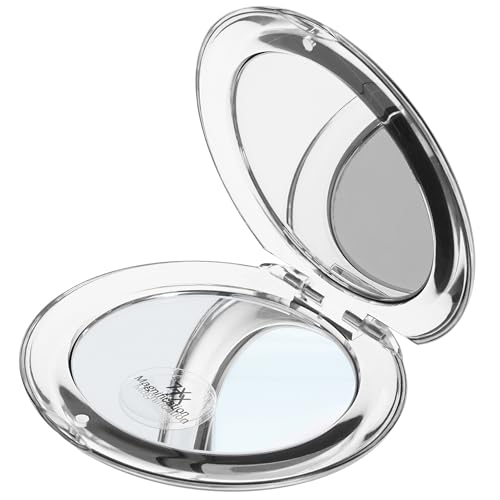 Fantasia fickspegel med förstoring: 8,5 cm liten spegel med förstoring i svart – handspegel – sminkspegel med 7 x förstoring